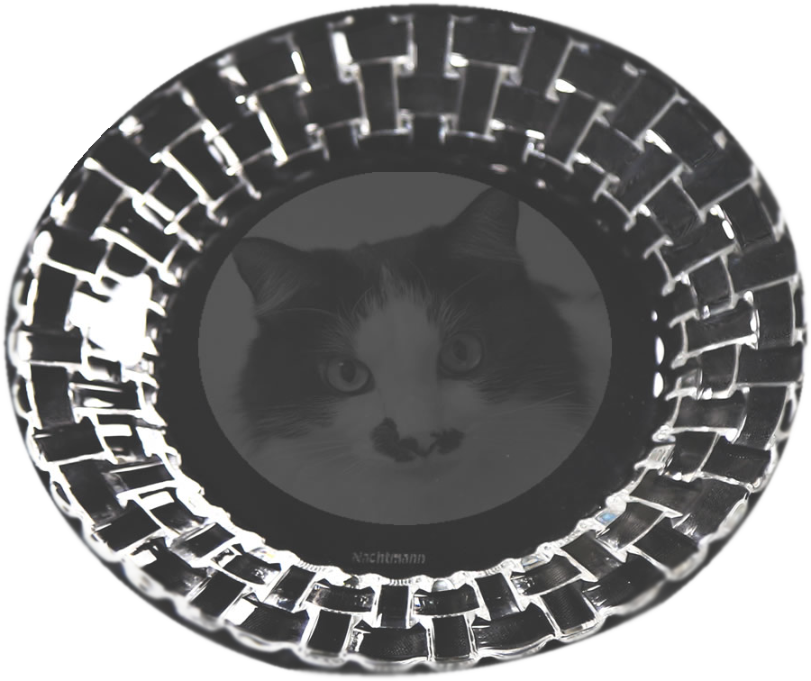 愛猫の姿を彫ったクリスタル食器。 インテリアとしても映え、普段使いとしても 最適です、猫との絆を再確認。
